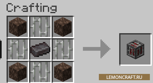 Мод на ловушку для души Soul Trap даст вам возможность создавать спавнеры монстров. Для этого вам потребуется специальная конструкция, состоящая из нового блока, железных блоков и железных прутьев. После создания этой конструкции, помещаем туда нужного вам моба, нажимаем ПКМ, после чего на месте конструкции появится простой ванильный спавнер.